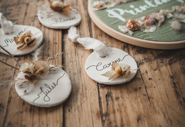 Je conçois des attentions florales et végétales pour vos évènements: mariages, repas de famille, baptêmes ou fêtes, avec des marque places, cadeaux d'invités et décorations de table uniques. Toujours en harmonie avec le thème que vous aurez choisi.