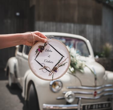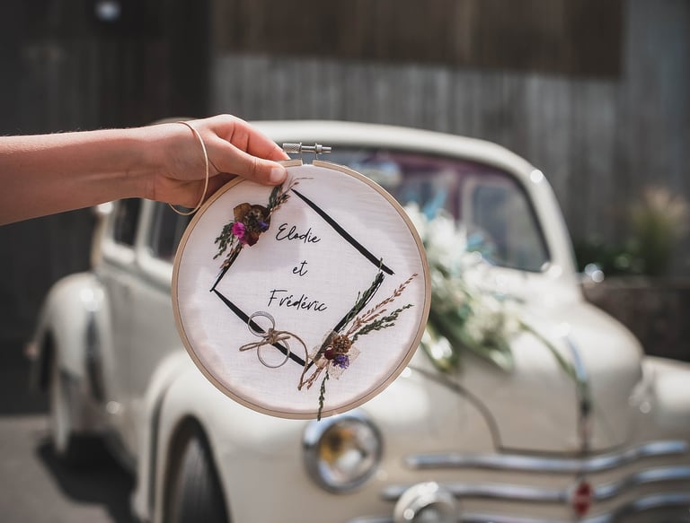Nous avons reçu ce porte-alliance en cadeau: il a accompagné notre mariage et reste aujourd'hui un souvenir précieux en décoration murale.